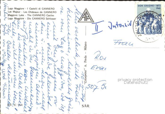 old postcard Cannero Riviera Lago Maggiore Die Schloesser postalisch gelaufen Erhaltung siehe scans