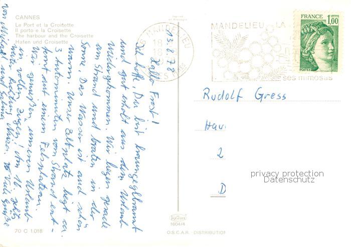 13778904 Cannes 06 Le Port de la Croisette postalisch gelaufen Erhaltung siehe scans [WerneD78] carte postale Wern Katcode 11170006106029