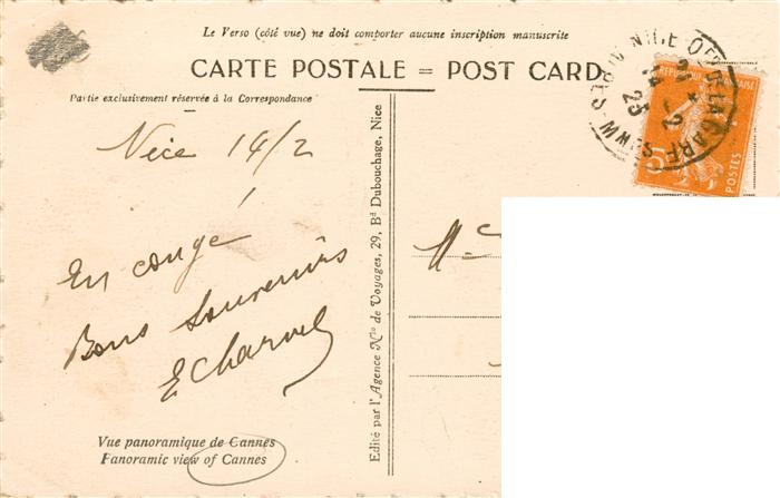 13879139 Cannes 06 Vue panoramique postalisch gelaufen Erhaltung siehe scans [FriedD77] carte postale Frie Katcode 11170006106029