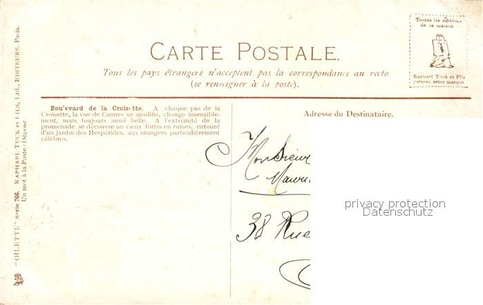 13572789 carte postale Cannes Alpes-Maritimes Boulevard de la Croisette postalisch gelaufen Erhaltung siehe scans [WerneD78] KatCode: 11170006106029