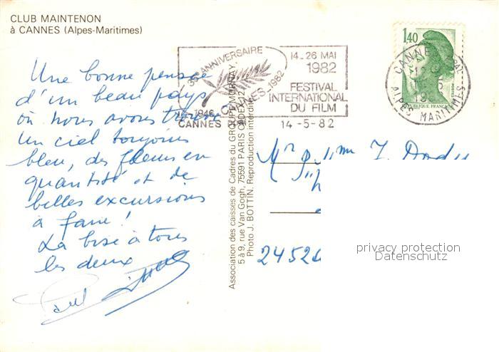 13581208 carte postale Cannes Alpes-Maritimes Club Maintenon Chambre Restaurant Terrasse postalisch gelaufen Erhaltung siehe scans [FriedD77] KatCode: 11170006106029