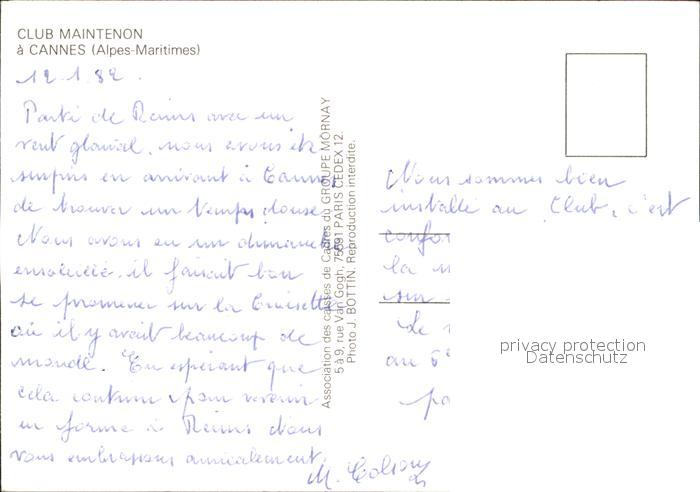 11909325 Cannes Alpes-Maritimes Club Maintenon postalisch nicht gelaufen Erhaltung siehe scans KatCode: 11170006106029