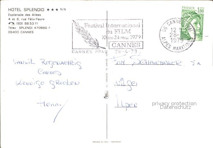 12326018 carte postale Cannes Alpes-Maritimes Fliegeraufnahme Mairie Hotel Splendid Casino Plages postalisch gelaufen Erhaltung siehe scans KatCode: 11170006106029