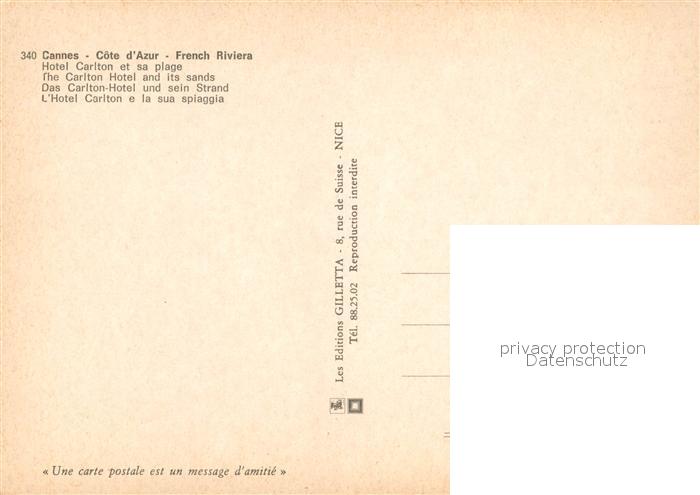 13241831 Cannes Alpes-Maritimes Hotel Carlton Strand postalisch nicht gelaufen Erhaltung siehe scans [KathaD81] KatCode: 11170006106029