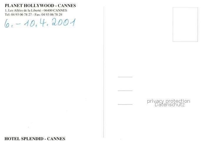 13030347 Cannes Alpes-Maritimes Hotel Splendid postalisch nicht gelaufen Erhaltung siehe scans [WerneD78] KatCode: 11170006106029