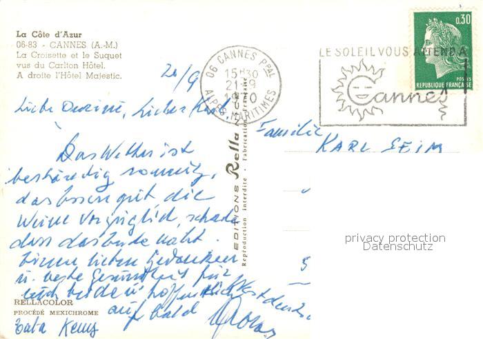 13296527 carte postale Cannes Alpes-Maritimes La Croisette et le Suquet vus du Carlton Hotel et Hotel Majestic postalisch gelaufen Erhaltung siehe scans [WerneD78] KatCode: 11170006106029