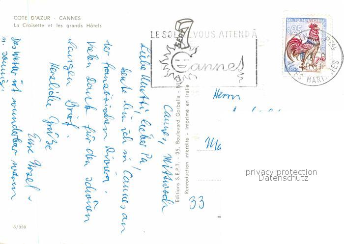 12858888 carte postale Cannes Alpes-Maritimes La Croisette et les grands Hotels Plage Cote d Azur postalisch gelaufen Erhaltung siehe scans [FriedD77] KatCode: 11170006106029