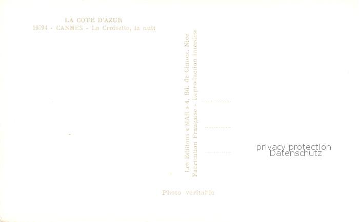 13573194 Cannes Alpes-Maritimes La Croisette la nuit Côte d Azur postalisch nicht gelaufen Erhaltung siehe scans [FriedD77] KatCode: 11170006106029