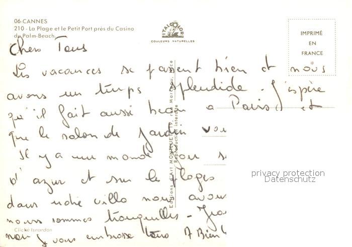 13590142 Cannes Alpes-Maritimes La Plage et le Petit Port pres du Casino du Palm Beach postalisch nicht gelaufen Erhaltung siehe scans [WerneD78] Wern Katcode 11170006106029