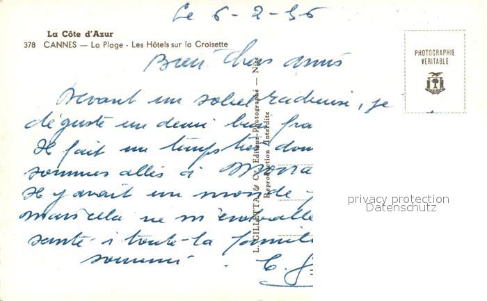 13535635 Cannes Alpes-Maritimes La plage les hôtels sur la Croisette Côte d Azur postalisch nicht gelaufen Erhaltung siehe scans [FriedD77] KatCode: 11170006106029