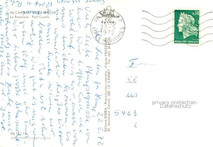 13363699 carte postale Cannes Alpes-Maritimes La Roseraie Port Canto vue aérienne postalisch gelaufen Erhaltung siehe scans [FriedD77] KatCode: 11170006106029
