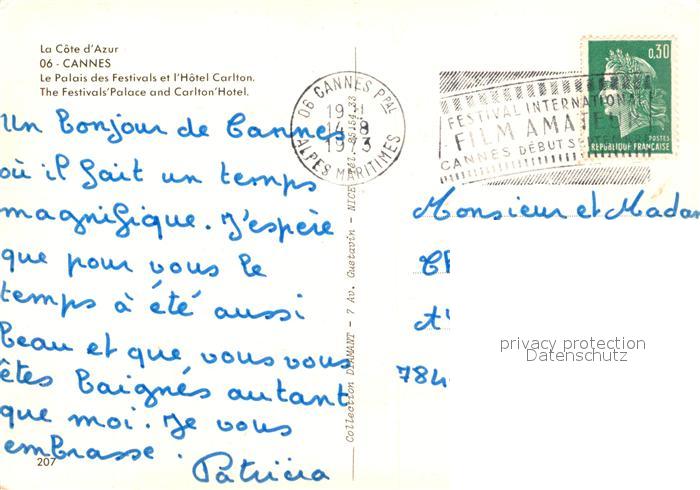 13583666 Cannes Alpes-Maritimes Le Palais des Festivals et l’Hotel Carlton postalisch gelaufen Erhaltung siehe scans [WerneD78] carte postale Wern Katcode 11170006106029