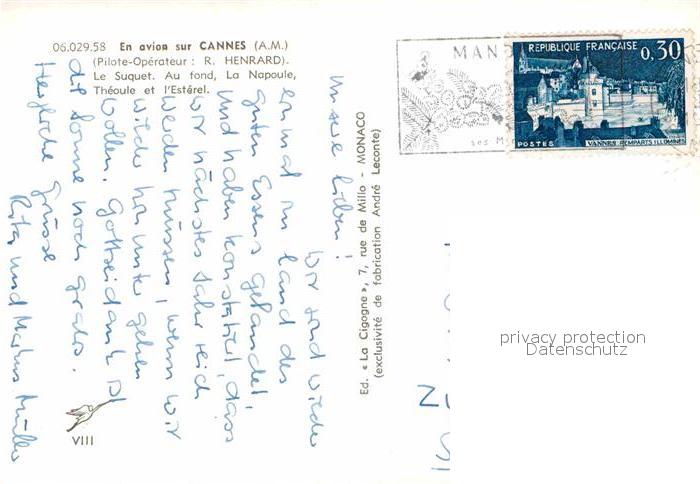 12755355 carte postale Cannes Alpes-Maritimes Le Suquet au fond La Napoule Theoule et l’Esterel vue aerienne postalisch gelaufen Erhaltung siehe scans [FriedD77] KatCode: 11170006106029