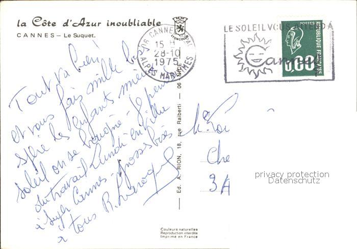 12263219 carte postale Cannes Alpes-Maritimes Le Suquet Cote d Azur Segelboot postalisch gelaufen Erhaltung siehe scans KatCode: 11170006106029