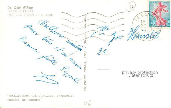 13493305 carte postale Cannes Alpes-Maritimes Le Suquet vu du Port Bateaux postalisch gelaufen Erhaltung siehe scans [FriedD77] KatCode: 11170006106029