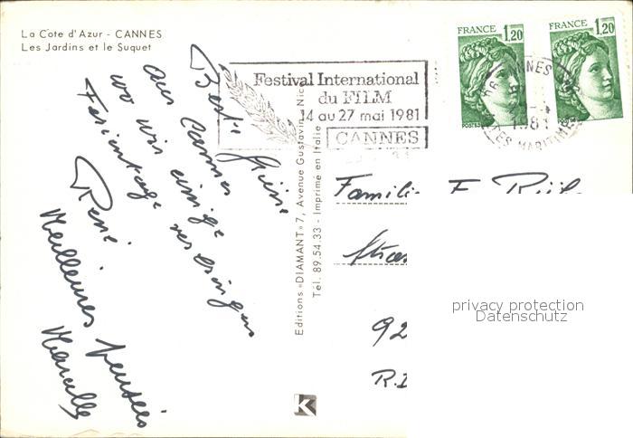12447651 carte postale Cannes Alpes-Maritimes Les Jardins et le Suquet postalisch gelaufen Erhaltung siehe scans KatCode: 11170006106029