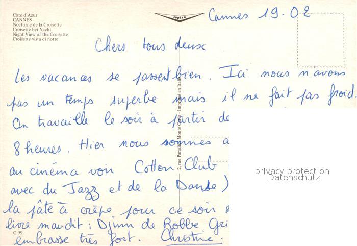 Cannes Alpes-Maritimes Nocturne de la Croisette Côte d Azur postalisch nicht gelaufen Erhaltung siehe scans [FriedD77]