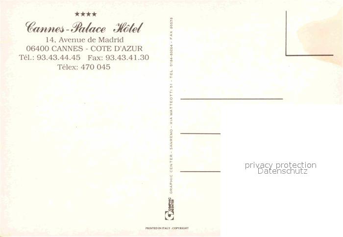 12893861 Cannes Alpes-Maritimes Palace Hotel Strand Empfang postalisch nicht gelaufen Erhaltung siehe scans [AndreD76] KatCode: 11170006106029