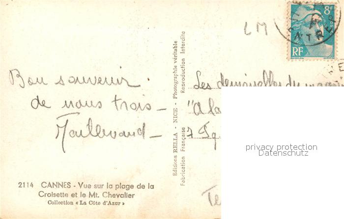 13532477 carte postale Cannes Alpes-Maritimes Plage Croisette et Mt. Chevalier postalisch gelaufen Erhaltung siehe scans [LiesaD40] KatCode: 11170006106029