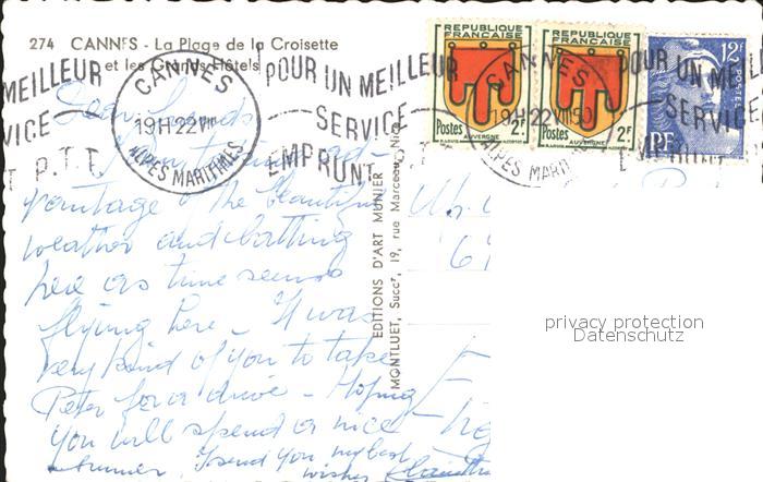 12288022 carte postale Cannes Alpes-Maritimes Plage de la Croisette postalisch gelaufen Erhaltung siehe scans KatCode: 11170006106029