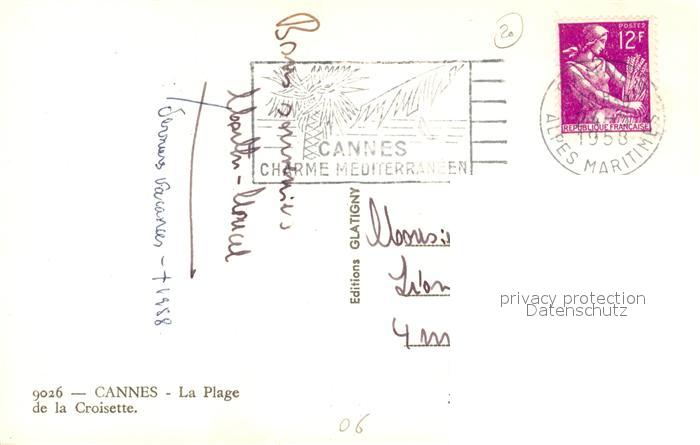 13493307 carte postale Cannes Alpes-Maritimes Plage de la Croisette Côte d Azur postalisch gelaufen Erhaltung siehe scans [FriedD77] KatCode: 11170006106029