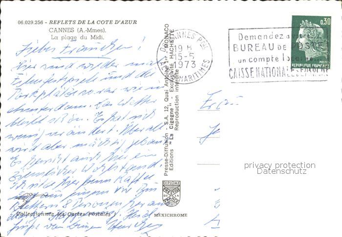 12458989 carte postale Cannes Alpes-Maritimes Plage du Midi postalisch gelaufen Erhaltung siehe scans KatCode: 11170006106029