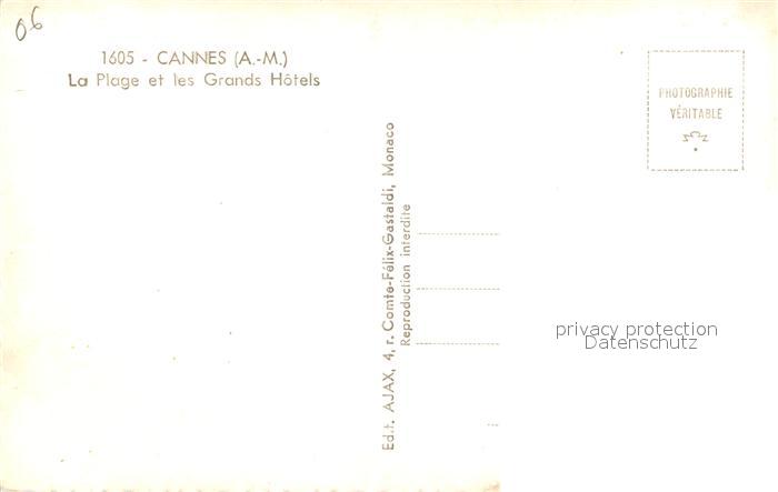 12948619 Cannes Alpes-Maritimes Plage Grands Hotels postalisch nicht gelaufen Erhaltung siehe scans [NatalD47] KatCode: 11170006106029