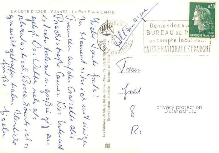 13238930 carte postale Cannes Alpes-Maritimes Port Pierre Canto Cote d Azur vue aérienne postalisch gelaufen Erhaltung siehe scans [FriedD77] KatCode: 11170006106029