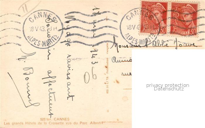 13362929 carte postale Cannes Alpes-Maritimes Promenade postalisch gelaufen Erhaltung siehe scans [LiesaD40] KatCode: 11170006106029