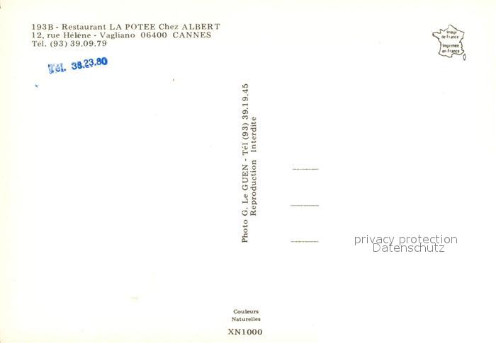13356742 Cannes Alpes-Maritimes Restaurant La Potee Chez Albert Bar postalisch nicht gelaufen Erhaltung siehe scans [WerneD78] KatCode: 11170006106029
