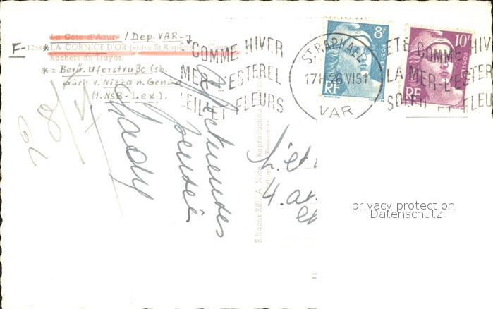 12288017 carte postale Cannes Alpes-Maritimes Rochers du Trayas Bucht postalisch gelaufen Erhaltung siehe scans KatCode: 11170006106029