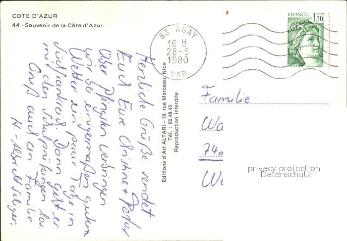 12253728 carte postale Cannes Alpes-Maritimes Saint Tropez La Napoule Les Rochers du Trayas Coucher de Soleil Cote d Azur postalisch gelaufen Erhaltung siehe scans KatCode: 11170006106029