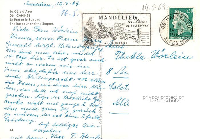 13073177 carte postale Cannes Alpes-Maritimes The harbour and the Suquet postalisch gelaufen Erhaltung siehe scans [WerneD78] KatCode: 11170006106029