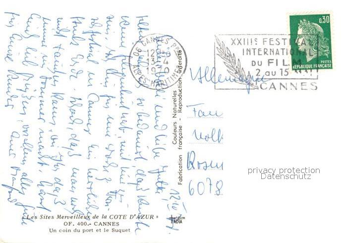 13358238 carte postale Cannes Alpes-Maritimes Un coin du port et le Suquet postalisch gelaufen Erhaltung siehe scans [FriedD77] KatCode: 11170006106029