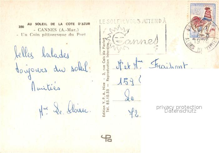 13580783 carte postale Cannes Alpes-Maritimes Un coin pittoresque du port postalisch gelaufen Erhaltung siehe scans [FriedD77] KatCode: 11170006106029
