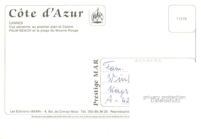 13519928 Cannes Alpes-Maritimes Vue aerienne au premier plan le Casino postalisch nicht gelaufen Erhaltung siehe scans [WerneD78] KatCode: 11170006106029