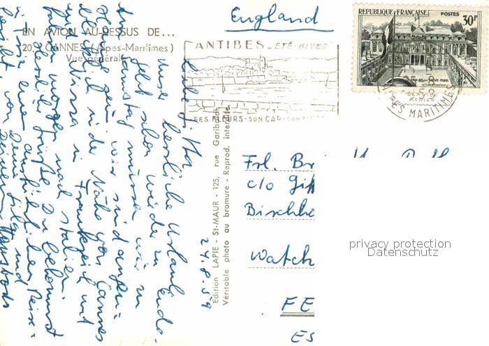 12811629 carte postale Cannes Alpes-Maritimes Vue aerienne Port postalisch gelaufen Erhaltung siehe scans [FriedD77] KatCode: 11170006106029