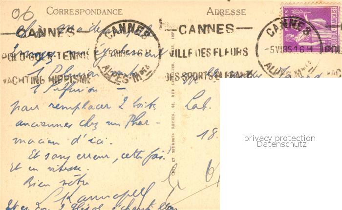 13532007 carte postale Cannes Alpes-Maritimes postalisch gelaufen Erhaltung siehe scans [LiesaD40] KatCode: 11170006106029