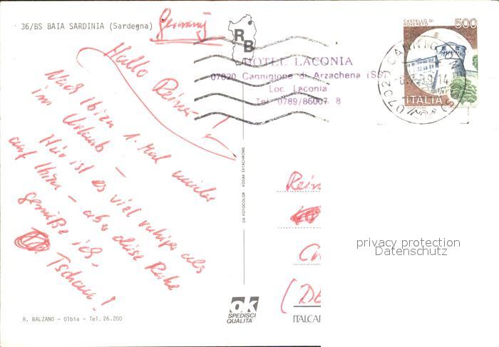 old postcard Cannigione di Arzachena Baia Sardinia postalisch gelaufen Erhaltung siehe scans