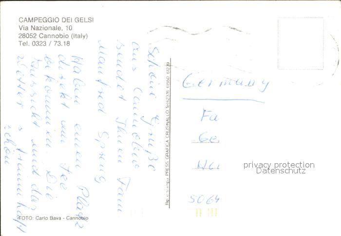 old postcard Cannobio Lago Maggiore Campeggio dei Gelsi Camping postalisch gelaufen Erhaltung siehe scans