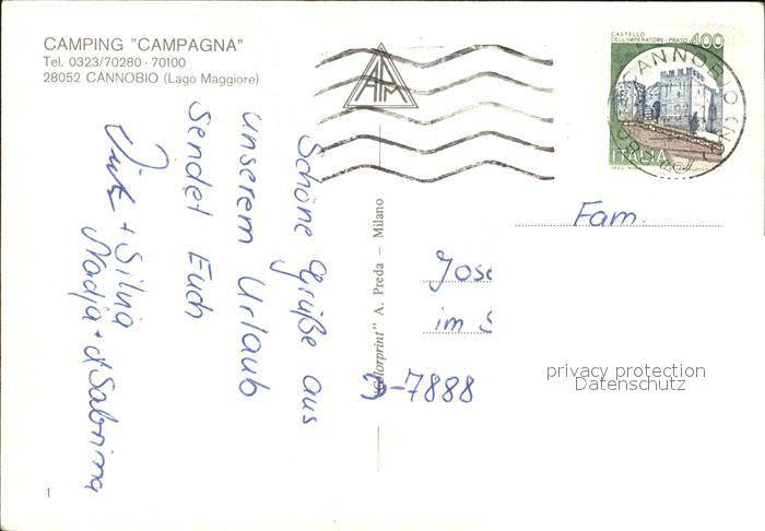 old postcard Cannobio Lago Maggiore Camping Campagna Seeufer Resaurant postalisch gelaufen Erhaltung siehe scans