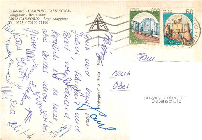 old postcard Cannobio Lago Maggiore Residence Camping Campagna Bungalow Restaurant postalisch gelaufen Erhaltung siehe scans [FriedD77]