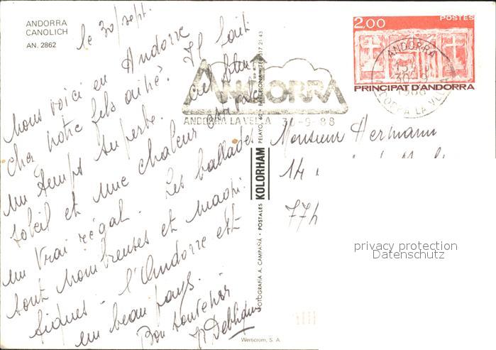 old postcard Canolich Bergdorf Pyrenaeen postalisch gelaufen Erhaltung siehe scans