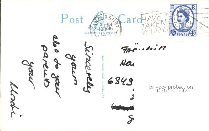 old postcard Canterbury Kent Christchurch Gateway West Gate Cathedral postalisch gelaufen Erhaltung siehe scans