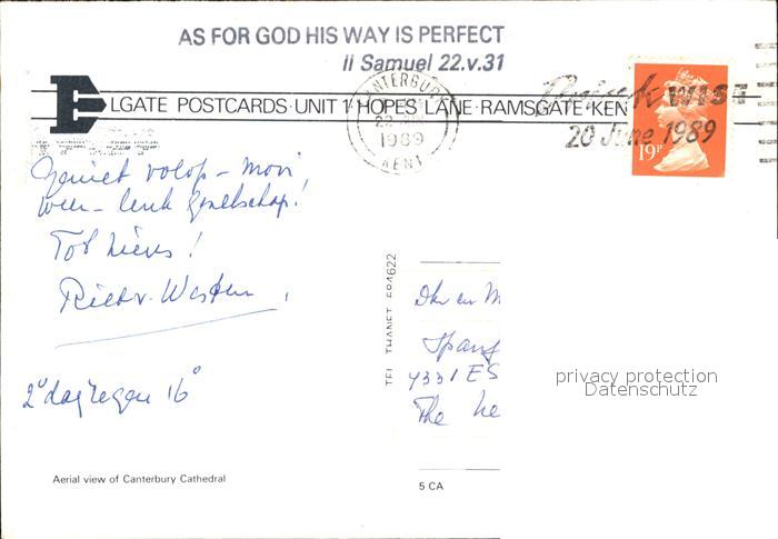 old postcard Canterbury Kent Fliegeraufnahme Cathedral postalisch gelaufen Erhaltung siehe scans