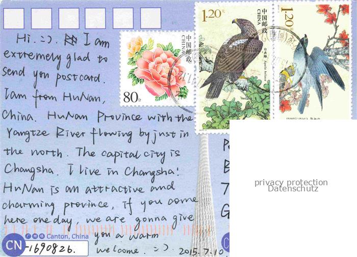 74085690 old postcard Canton China Canton Tower postalisch gelaufen Erhaltung siehe scans [WerneD78] KatCode: 12030