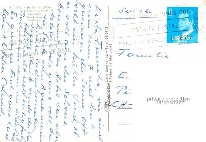 old postcard Canyamel Hotel Laguna postalisch gelaufen Erhaltung siehe scans [LiesaD40]