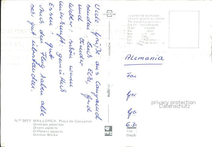 old postcard Canyamel Stadtansichten postalisch gelaufen Erhaltung siehe scans
