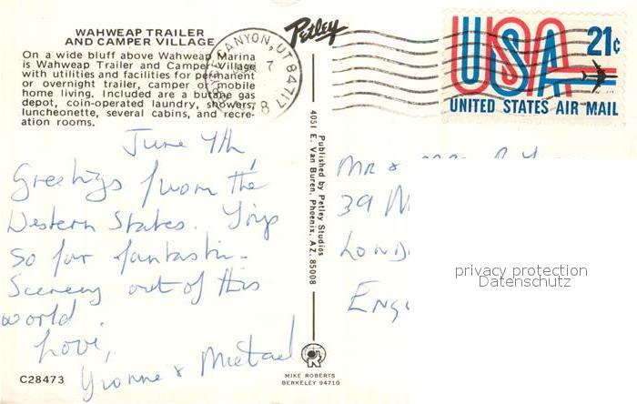73127742 old postcard Canyon Creek Fliegeraufnahme Camper Village postalisch gelaufen Erhaltung siehe scans [KathaD81] KatCode: 14140280000000