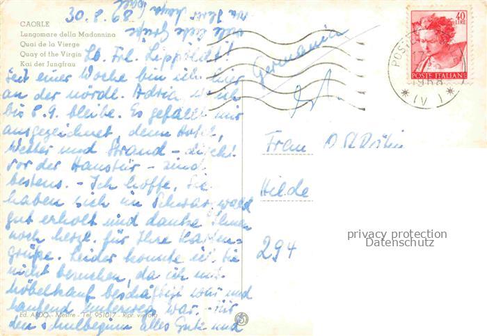34145941 old postcard Caorle Veneto IT Lungomare della Madonnina postalisch gelaufen Erhaltung siehe scans [WerneD78] KatCode: 11240